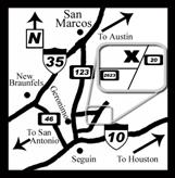 From all points South: Make your best route to the Highway 123 Exit on IH10 (Exit 610) in Seguin, TX. Go North on 123 towards San Marcos for approximately 1.5 miles. Turn right on FM20 and travel about 7 miles. Roughly 300 yards past the FM2623 intersection you will see the entrance to the site. Watch for SCA signs.